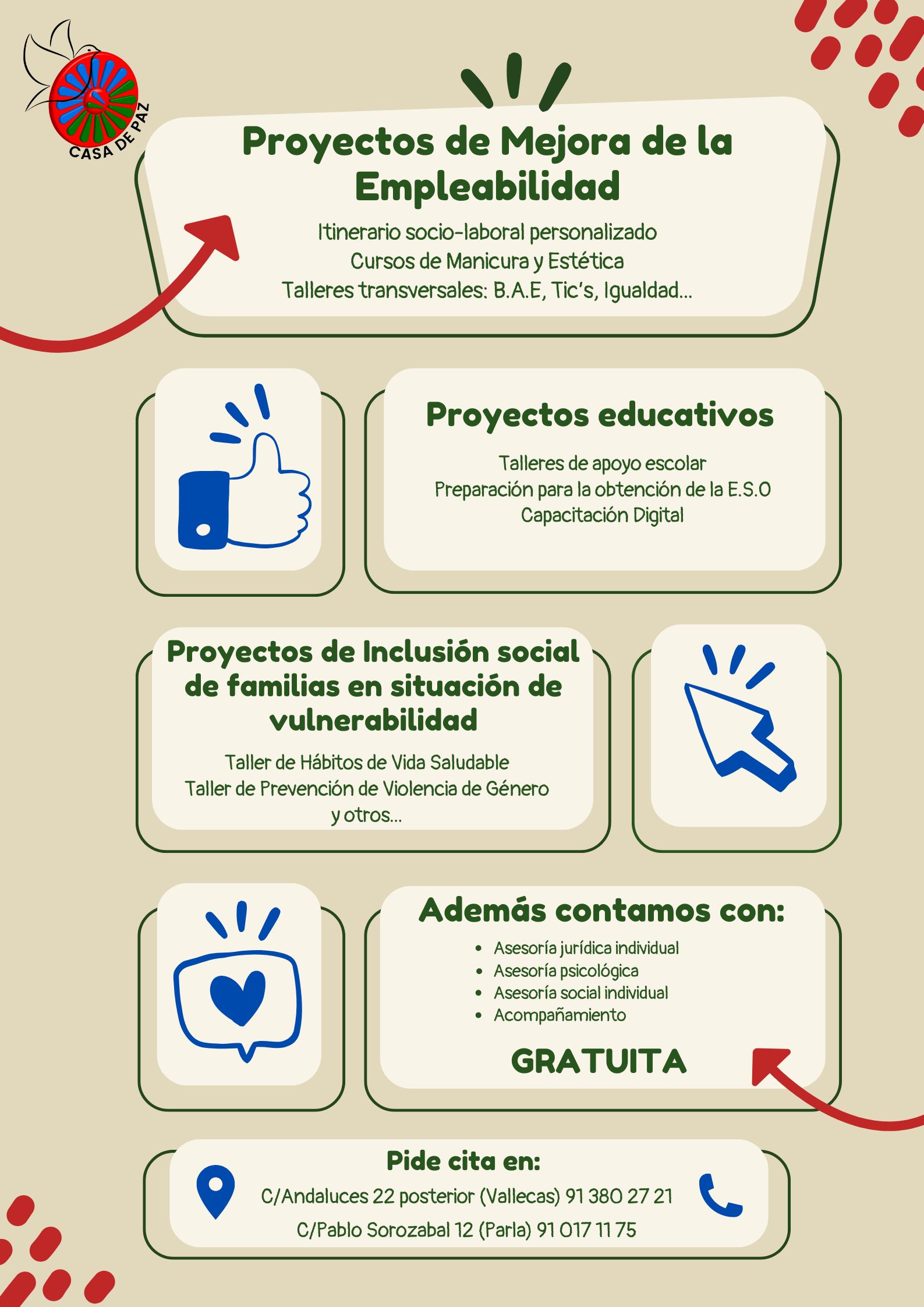 Ofrecer servicios específicos y especializados dirigidos a personas en situación de exclusión social o en riesgo de estarlo, y de manera especializada conseguir la promoción integral de la comunidad gitana desde el reconocimiento y apoyo a su identidad cultural.